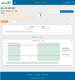 A live reporting tool allows the program to compare any metric against the GAMUT population. Additionally, a program can compare itself by patient type, by transport mode and by region. It can compare against the whole GAMUT population, or their own programs individually.