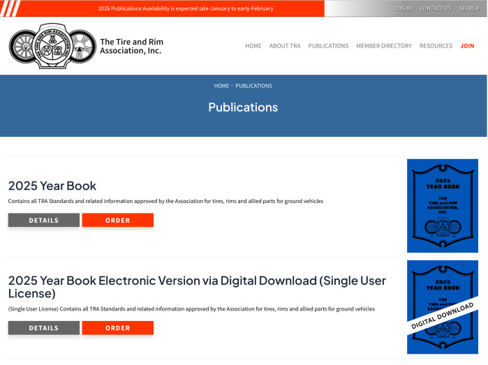 Website Mobile SiteTRA’s legacy website and Extranets were functional but outdated—relying on shared credentials, manual processes for membership approvals, and inconsistent content management workflows across member and foreign-member audiences. As the global standards body for tire, rim, and wheel engineering, TRA required a modern digital platform capable of supporting a structured publishing process, controlled access to technical documents, and eCommerce for publications.